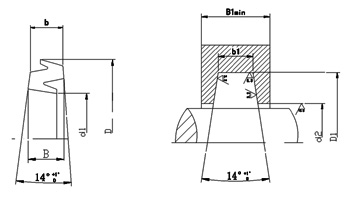| 基本尺寸d1 | 基本尺寸D1 | 基本尺寸d2 | 基本尺寸b1 | 用于鋼B1min | 用于鑄鐵B1min | |||||